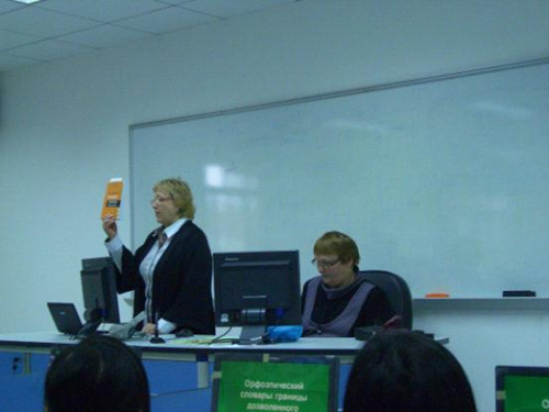 格里金娜从俄语修辞学与言语学的角度,详细地介绍了俄语词汇使用及修辞方式上的重点与难点,指出了几种常见的混用、误用现象。科诺瓦洛娃教授则从正音法的角度,介绍了俄语词汇的发音规律、重音位置特点以及语音和词汇来源的关系等。两位教授还通过现场解题与问答互动,使俄语系的学生参与其中,现场气氛十分融洽、活跃。乌拉尔联邦师范大学的几位教授对广外百家乐在线试玩