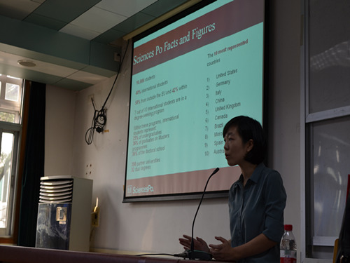 刘华胤老师首先向我们介绍了巴黎政治大学(以下简称“巴政”)的教学特点。巴政采取的是高度交叉的多学科教学,旨在培养全球化所需的复合知识型未来决策人才。巴政注重研究,目前已有12个领先的人文科学研究中心。全校40%的学生为国际学生,来自世界130多个不同国家和地区,同时巴政拥有超过350个遍布全球的合作伙伴大学:如哥伦比亚大学,哈佛大学,普林斯顿大学,伦敦政治经济百家乐在线试玩