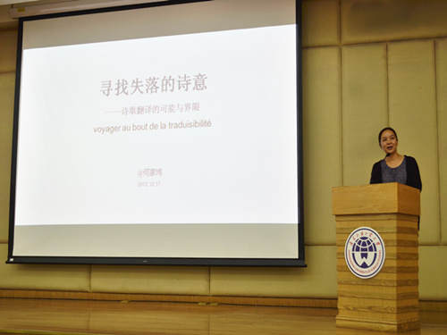本网讯 12月17日晚7点,在图书馆负一层报告厅举行了由青年翻译家、92届法语校友何家炜主讲的主题为“寻找失落的诗意——诗歌翻译的可能与界限”的讲座,本次讲座由法语系主任杨晓敏主持,邀请了原广外校长黄建华,中文百家乐在线试玩