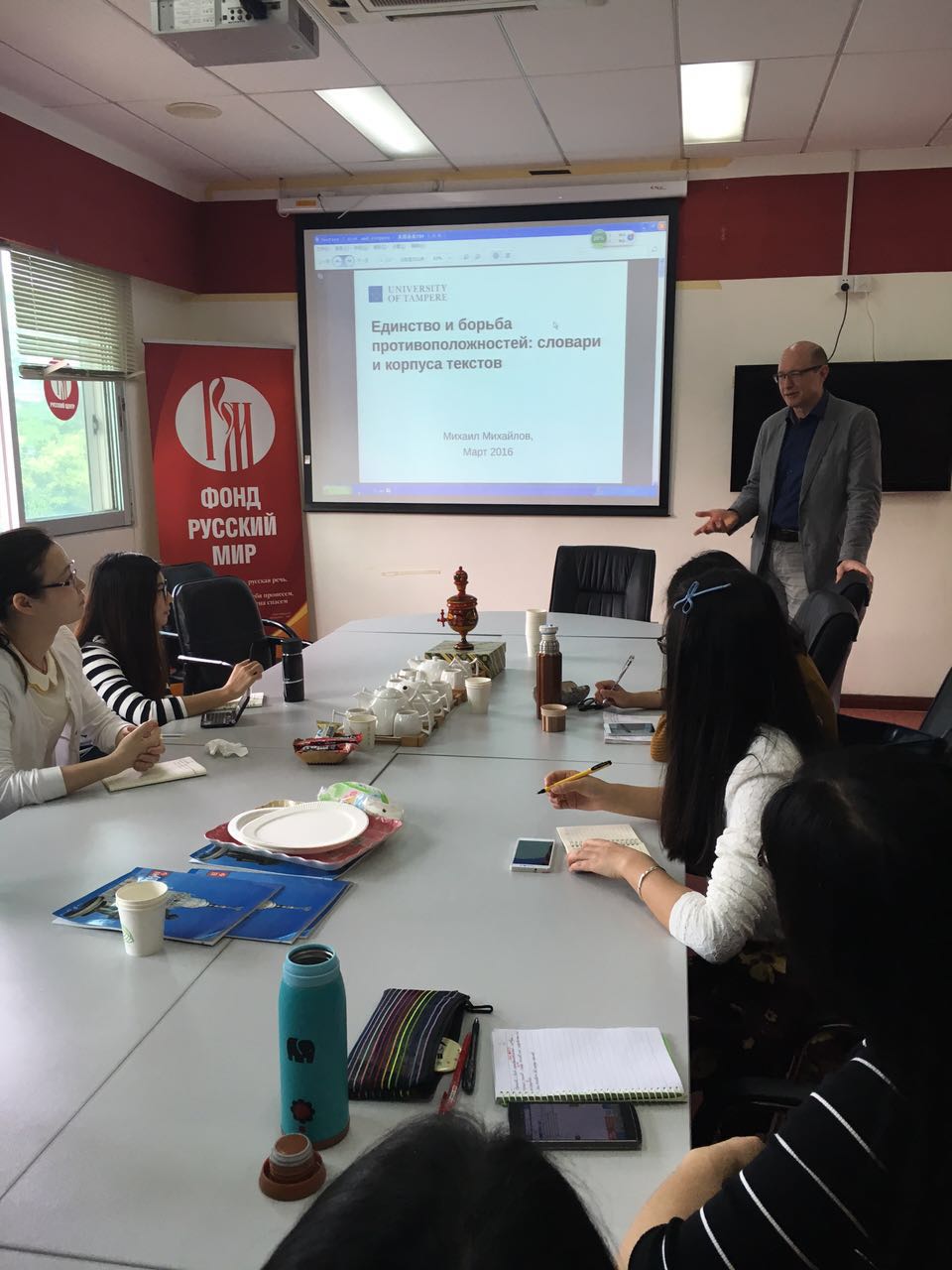 3月31日下午,在我校俄语中心米哈伊洛夫教授再次为俄语系老师和研究生开展了题为《对立性的统一和斗争:词典和数据库》(Единство и борьба противоположностей: словари и корпуса текстов)的讲座。在讲座上,教授给大家讲解了如何利用俄语数据库作为研究和学习俄语的资源来进一步提高和掌握俄语。教授还向大家传授了建立语料数据库的方法和经验。俄语系师生在听完讲座后都表示受益匪浅。