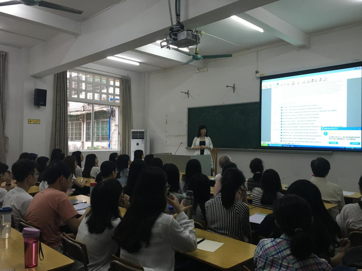 本网讯 继法语MTI系列讲座前三讲获得成功以后,法语系特邀法国电视二台France 2驻京记者站制片人常静来我校讲学。2016年5月09日,常静以《如何利用电视资源学习语言,积累知识,提高翻译能力》为题,为百家乐试玩平台