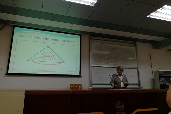 副院长刘齐生教授主持,胡忠利、崔涛涛、Anja Döscher等各位老师出席,德语专业广大本科生和研究生参加听取。