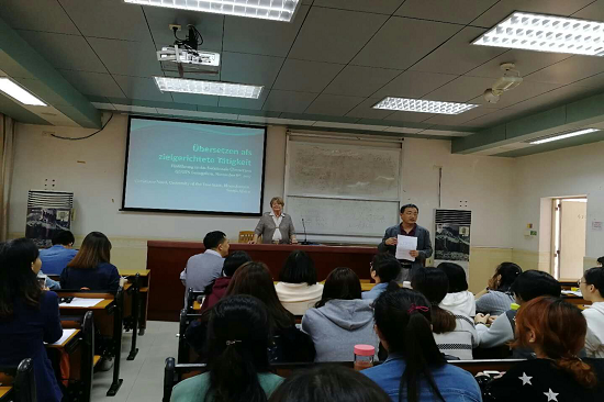 德语语言文学专业的师生做了题为“翻译作为目的性行为--功能翻译学导论”的专题讲座。