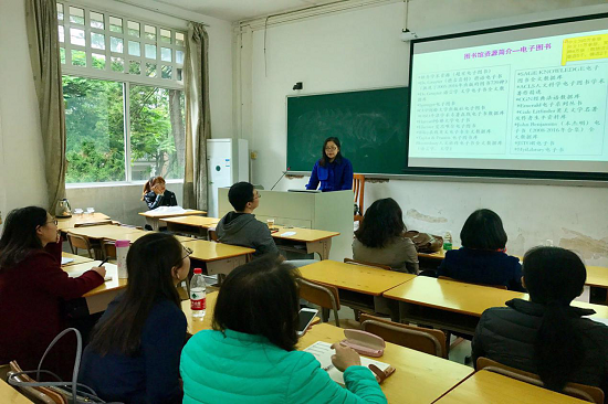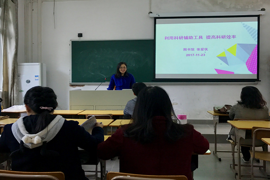 第一次青年论坛在第四教学楼209室顺利举行。 广东外语外贸大学图书馆信息服务部主任、副研究馆员张爱优为与会青年教师就“如何利用科研辅助工具提高科研效率”这一主题,作了详细的介绍。
