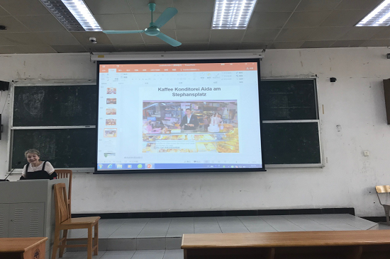 2018年3月26日上午举行的关于奥地利国家概况的讲座上,Wagner教授对奥地利进行了详细介绍,涵盖了地理、历史、音乐、哲学、饮食、风俗等方面的内容。这次讲座图文并茂、生动形象,极大地增进了同学们对奥地利的了解。