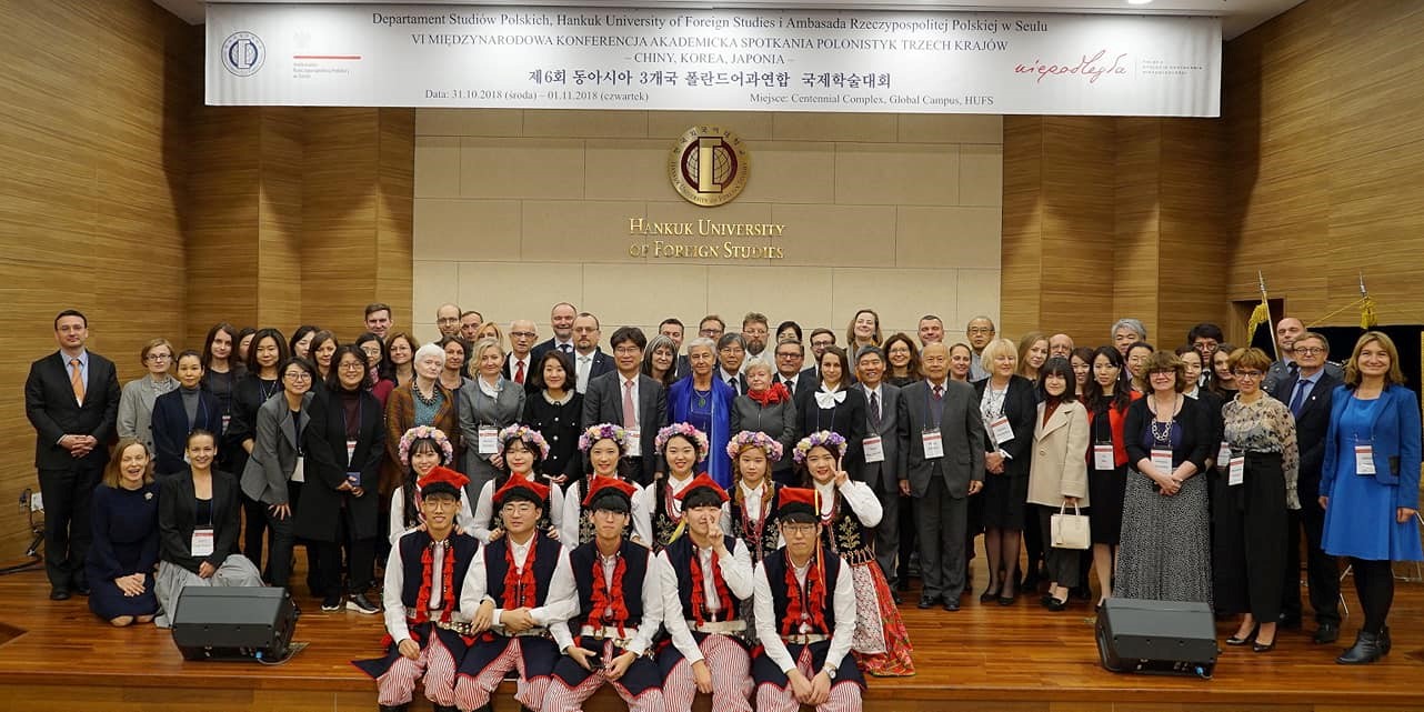 本网讯 2018年10月31日至11月2日,第六届中、日、韩三国波兰语国际学术研讨会在韩国外国语大学成功举行,来自北京外国语大学、广东外语外贸大学、上海外国语大学、东京外国语大学、波兰华沙大学、雅盖隆大学、西里西亚大学等18所高校及机构的40多名师生参加了此次大会。广东外语外贸大学波兰语系外教宝琳娜•海赫瓦奇(Paulina Chechłacz)、莱娜塔•锡根(Renata Siegień)代表广外波兰语系参加了此次大会。