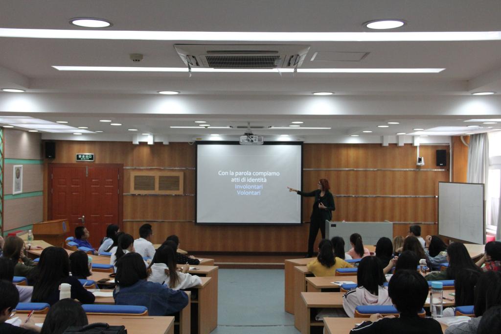 本网讯 第十八届意大利语语言周正在全国各地如火如荼地进行着,今日,继意大利驻广州总领事馆总领事白露茜女士(Lucia Pasqualini)、意大利驻广州总领馆文化专员江梅女士(Rossella Giaometti)等到访我校并为此次语言周作了开幕式演讲之后,意大利语系又有幸邀请到Vera Gheno女士来到我校,围绕此次语言周主题“意大利语与网络,意大利语的网络”为同学们带来了一场精彩的讲座。Vera Ghneno女士是一位社会语言学家,研究人们如何在网络上运用意大利语,现任职于意大利著名的“秕糠学会”。