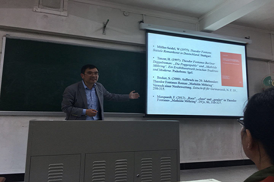 本网讯 2018年4月26日,研究生院“名师名课名讲坛”项目支持的系列讲座:冯塔纳小说《玛蒂尔德·墨琳》新解,邀请著名德语文学研究专家吴晓樵教授就19世纪德国批判现实主义作家冯塔纳及其小说《玛蒂尔德·墨琳》做了专题讲座。这次讲座吸引了德语系师生及其他百家乐在线试玩