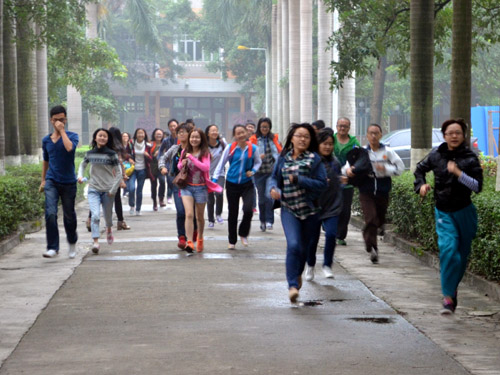 会议部分结束后,紧张的寻宝游戏环节在周忆秋主席一声令下后开始,全场干事鱼贯而出,冲向散布在广外校园里的各个站点,他们奔跑的身影在阴冷的深秋中无疑是一道靓丽的风景线。经过激烈角逐,最终实践部、新闻部、纪检部分别斩获前三名。寻宝游戏后各部门集合在体育场,进行最后一个环节——猜词游戏。这同样是考验团队默契的一个游戏,只见各队皆比手划脚,好不紧张。经主席团统计,实践部获得了本次游戏的总分第一。
