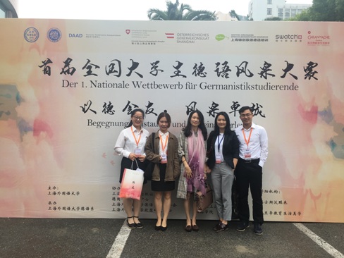 德语系大四学生陈劲草、唐凌颖、张均在黄羽欢老师的指导和带领下参加了此次大赛。
