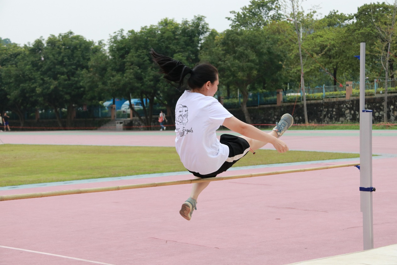 在男女子跳远的赛场上,为了能够跳出最好的成绩,大家不顾秋日的凉风,纷纷换上了短袖短裤。一番准备活动后,参赛选手们开始了激烈的角逐。助跑,起跳!动作一气合成,让两旁的观众爆发出阵阵掌声。最终葡萄牙语1701的赵钰洋以5.43m的成绩名列男子组第一,法语1701的吴纪元和西班牙语1802的吴鸿威4.55m分别荣获第二第三名。而女子组的竞争异常激烈,俄语1702的卢人琳以3.86m的成绩斩获第一,第二名俄语1702的曾镓淇和第三名法语1801的曾淑媚分别以3.60m和3.40m的成绩紧随其后。