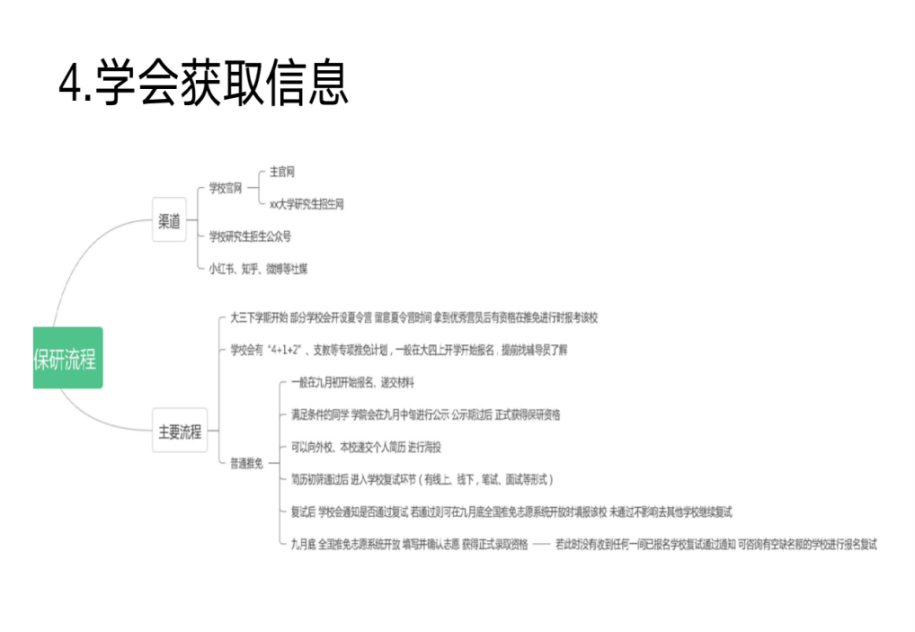 法语专业陈昊文,从保研选择的思考、保研制度介绍、如何准备和分享总结四个方面进行了细致的介绍,他指出奔着一个目标的确最有效率,但所有目标都相互关联,引导师弟师妹正确认识保研。同时,围绕保研时间线,以几所学校的报名系统和材料为例,分享如何做好提前准备,总结了关键点和难点,提供了满满的干货。