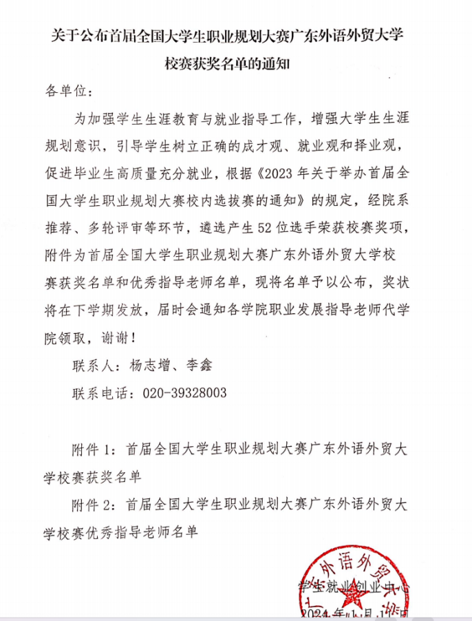 本网讯 1月11日,首届全国大学生职业规划大赛广东外语外贸大学校赛评比结果公布,经过院系推荐、多轮评审等环节,遴选产生52位选手荣获校级奖项。百家乐试玩平台
