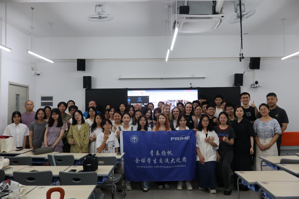 俄语系联合广外全球学生交流大使团在白云山校区一教南楼307室举办了与莫斯科国立语言大学的校际学生交流见面会。俄语系主任陈欢老师、姜超老师、梁玮琦老师,以及外教沙拉夫特季诺夫·扎力到场交流,俄语专业40余名学生踊跃参与,现场气氛热烈,交流互动频繁。