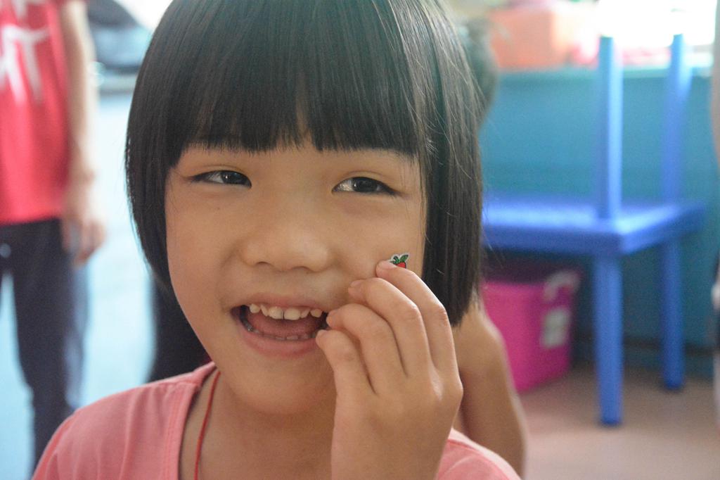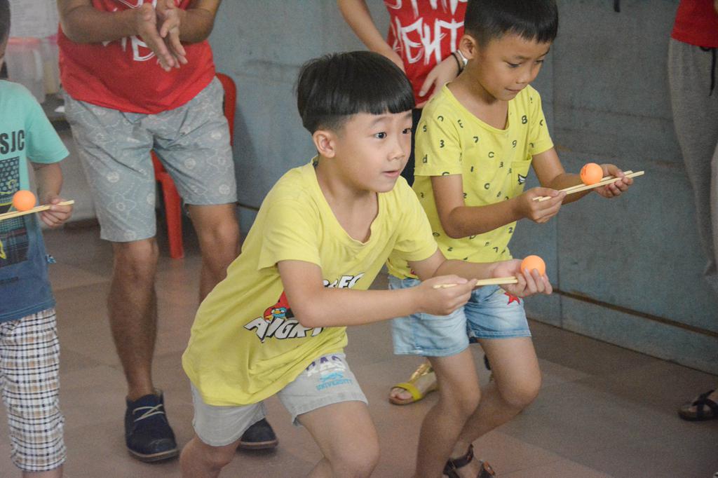 学生们大多是一年级,于是教学组便采取了寓教于乐的教学方式,让学生们在游戏中感受到学习的魅力。为了方便记忆,增加趣味性,负责教学的老师们还给自己取了外号,分别是西瓜哥哥、草莓姐姐、荔枝姐姐、葡萄姐姐和橘子姐姐。为了拉近与小朋友的距离,“水果”老师们在开学典礼后组织起了小游戏,例如夹乒乓球、蒙眼画鼻子、抢凳子。小朋友们都争先恐后地举起小手,踊跃参与,玩得不亦乐乎。