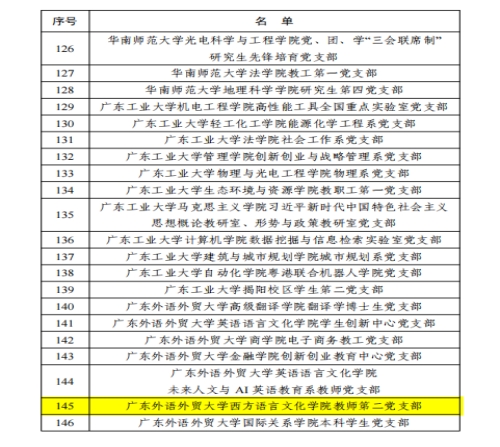 近日,中共广东省委教育工委公布第五批全省党建工作示范高校、标杆院系、样板支部培育创建单位名单,西方语言文化百家乐在线试玩