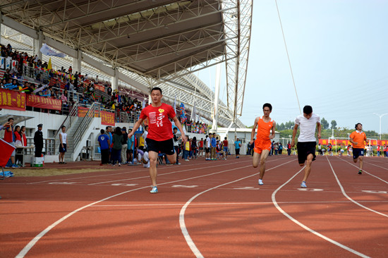 的加油呐喊声中,曾梓墩仅仅在十几秒的时间内不断加速,率先冲过终点,夺得了男子100米的冠军,为百家乐在线试玩
