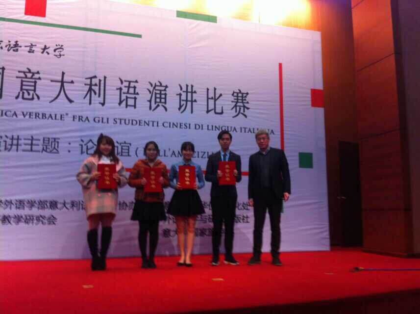 本网讯 2014年11月29日,首届全国意大利语演讲比赛在北京语言大学举行。此次比赛由全国意大利语教学研究会和北京语言大学联合主办,意大利驻华使馆文化处和北京外国语大学出版社共同协办,邀请全国开设意大利语专业高校学子参与。
