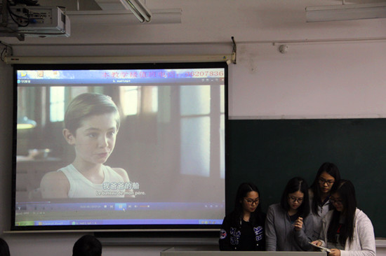 在学习部干事介绍规则后,各组分别上场。sonho2.0的同学们为影片《直到命运将我们分开》的配音搏得了全场热烈掌声;大二选手以相同影片中不同的片段为大家带来了欢乐。