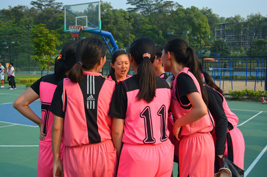 本网讯 2015年4月16日下午4点,广外杯女篮小组赛在烈日晴空下展开角逐,本次比赛由西语女篮对阵公开女篮。
