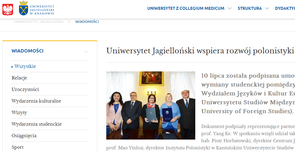 院长杨可、波兰语系系主任茅银辉一行二人应波兰知名学府克拉科夫雅盖隆大学(以下简称“雅大”)之邀访问该大学。