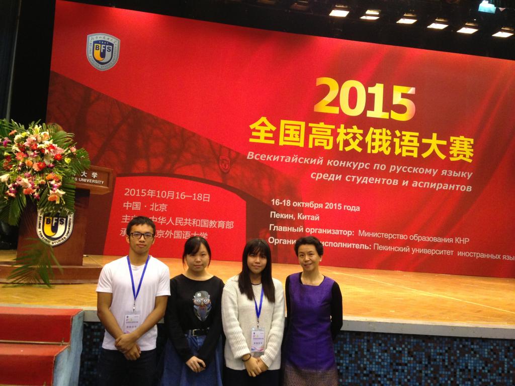本网讯 2015年10月16日至18日,全国高校俄语大赛在北京外国语大学举行,作为中俄两国人文领域合作框架内的机制化项目,由中国教育部主办的“全国高校俄语大赛”是中国最高规格的俄语大赛。来自全国114所高校的500多位俄语专业学生和俄语界专家学者云集于此。其中306位学生角逐各赛事奖项。
