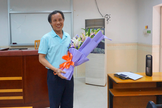 最后,由学生代表向周老师赠送了花束以表示感谢。