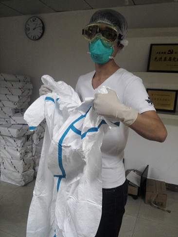 学生配备有一次性防护服、医用防护口罩、眼罩、防护手套、防水靴套。机场工作人员现场指导同学们如何穿脱防护服,尤其是脱防护服,由于防护服已经受到污染,因此在脱的时候要格外注意消毒工作、脱衣顺序以及避免和外层防护服接触。
