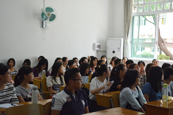 在亲切活泼的气氛中,张密教授围绕翻译理论体系,为同学们详细介绍了关于实用翻译学、理论翻译学和基础翻译学的相关知识。张教授从理解阶段、表达阶段和对实用翻译学的评述三个方面进行了讲解,强调翻译首先需要理解原文,而原文需要我们从文字、逻辑、理论与事实这些方面进行理解;表达则要注重原文的表达方式与中文用语习惯之间的转换,注重语言的形象表达。最后,张教授耐心地回答了同学们提出的问题,为本场讲座画上了圆满的句号。