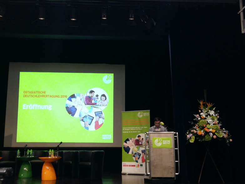 东亚地区语言部负责人Ulrike Drißner女士、广东外语外贸大学刘齐生教授分别致开幕词。刘齐生教授在开幕词中指出,随着中德在政治、经济方面交流等不断深入,德语学习在中国大陆越来越受到重视,而新媒体的推广和普及要求德语教师掌握新的方法和能力。在这一背景下,第一届东亚德语教师大会将为与会者提供交流新知识和经验的平台,召开得非常及时。