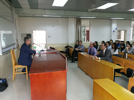 法国驻广州领事馆总领事傅伟杰(Bertrand Furno)先生,科技教育合作专员倪杰缔(Nicolas Gerardi)先生,语言教育与运动项目官员杜鹏(Pierre-Yves Tourpin)先生,出席了本次讲座,法语系部分教师也参加了讲座。讲座后,博尼法斯先生还与师生们就相关问题进行了热烈的交流。