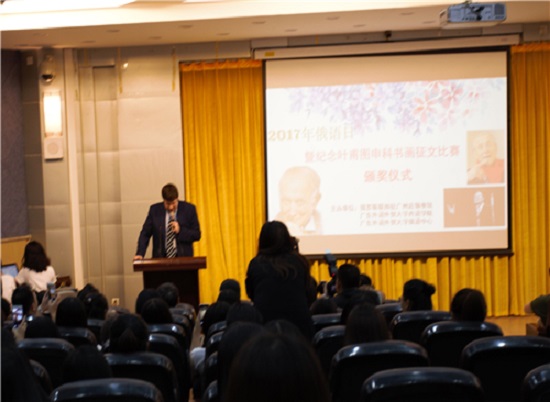 本网讯 2017年6月15日下午三点,第七届“俄语日”暨纪念叶甫图申科征文书画比赛颁奖仪式于我校七教水上报告厅成功举办。出席本次“俄语日”的嘉宾有俄罗斯驻广州总领事馆文化随员格里高利·科雷什金,广外百家乐在线试玩