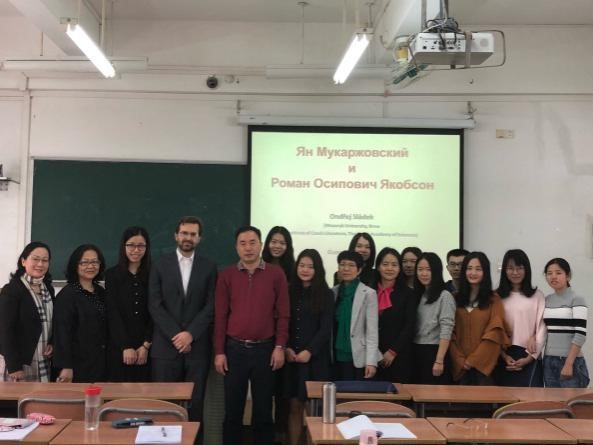 俄语专业本科生和研究生开设了题为《布拉格结构主义学派:穆卡若夫斯基与雅各布森》的讲座。俄语系不少教师也饶有兴致地前来听讲。