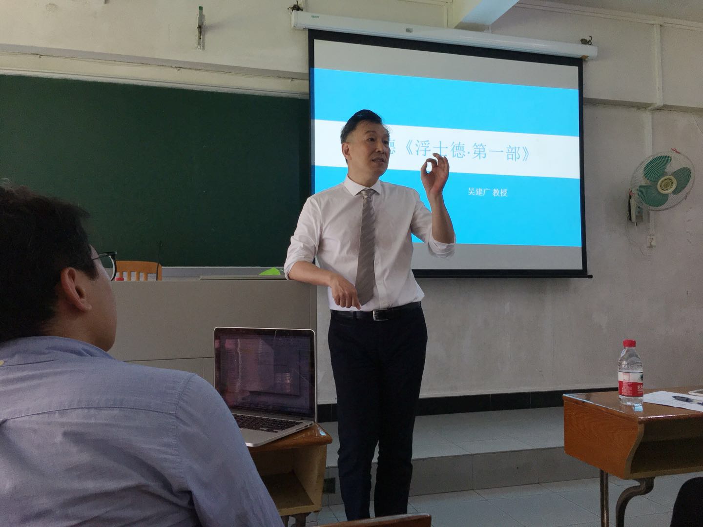 讲座末,在座的师生们根据自己的对歌德、《浮士德》与启蒙之间的关联的理解与疑惑进行了提问,吴教授都逐一做了详致解答,提供了阐释《浮士德》的新视角。最后,在德语系余杨教授的主持和致辞感谢下,此次讲座授课圆满结束。吴建广教授作为国内文坛享誉盛名的德语研究者用生动、幽默的语言深入浅出地评介了世界名著《浮士德·第一部》的深刻内涵,探触到了作品中有别以往的思想内涵,使参与讲座的师生们顿有醍醐灌顶之感。