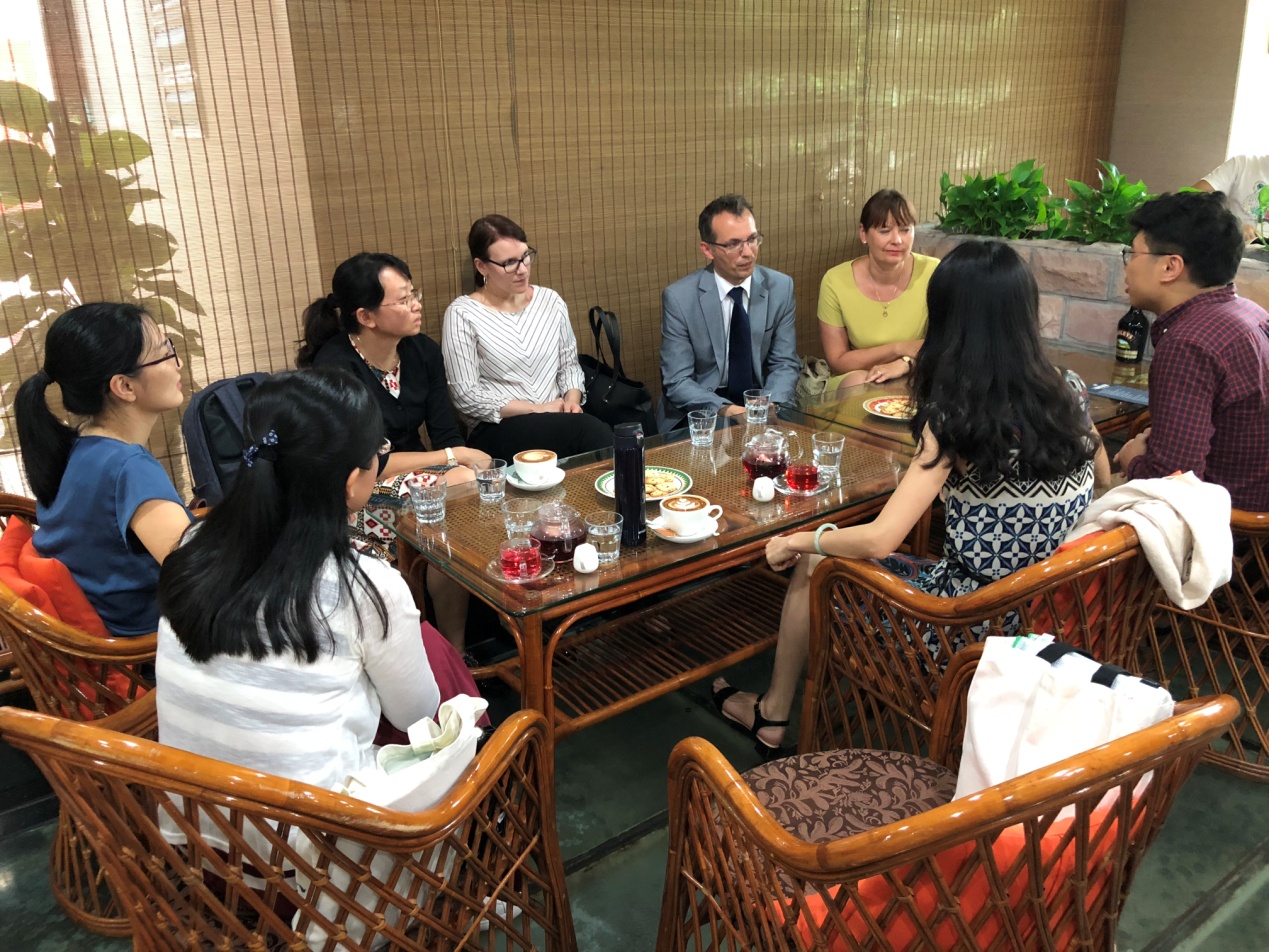 此外,双方围绕校际合作展开交谈,深入探讨彼此在本科生交流,研究生培养、特别是德语口译专业硕士培养领域展开进一步合作的可能性,并为下一阶段的校际合作和学术交流进行长远规划。会后,卢铭君教授代表德语系与两位波兰教授交换礼物。