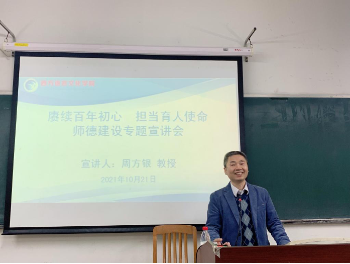 院长周方银教授开展了主题为《赓续百年初心 担当育人使命》的师德建设专题宣讲会,百家乐在线试玩