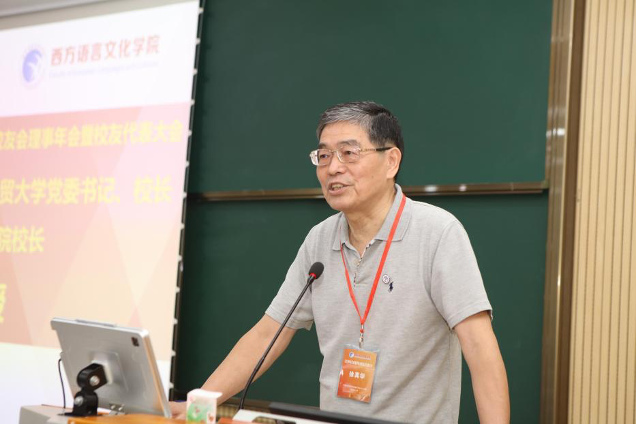 校长徐真华讲话。徐真华教授引用法国作家名句阐述校友会的工作意义,他将校友会比作“生生不息的生命之河”,希望更多代表新生力量的新校友加入校友会,努力张扬广外精神、西语风格;希望校友们走向社会后,不忘初心使命,寻找人生意义、创造生命价值;希望优秀校友更好的帮助一代代毕业生,搭建好桥梁纽带,将广外西语的优良传统传扬到世界各地。