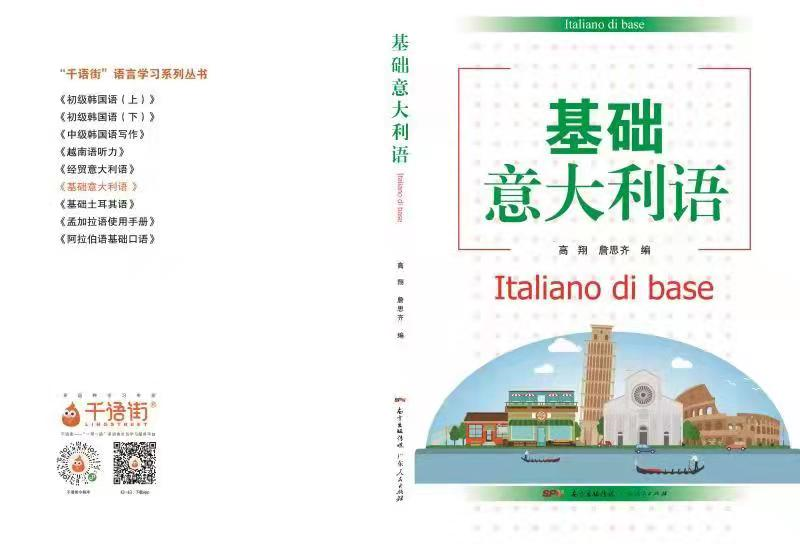 近日,由广东外语外贸大学意大利语系教师高翔与詹思齐共同编著的《基础意大利语》教材由广东人民出版社出版。其中该书的第一至八章由高翔负责编写,第九至十六章的编写工作由詹思齐负责,专供我国各高校意大利语专业基础阶段学习使用,也可作为自学教材,供社会各界广大意大利语学习者和爱好人士使用。