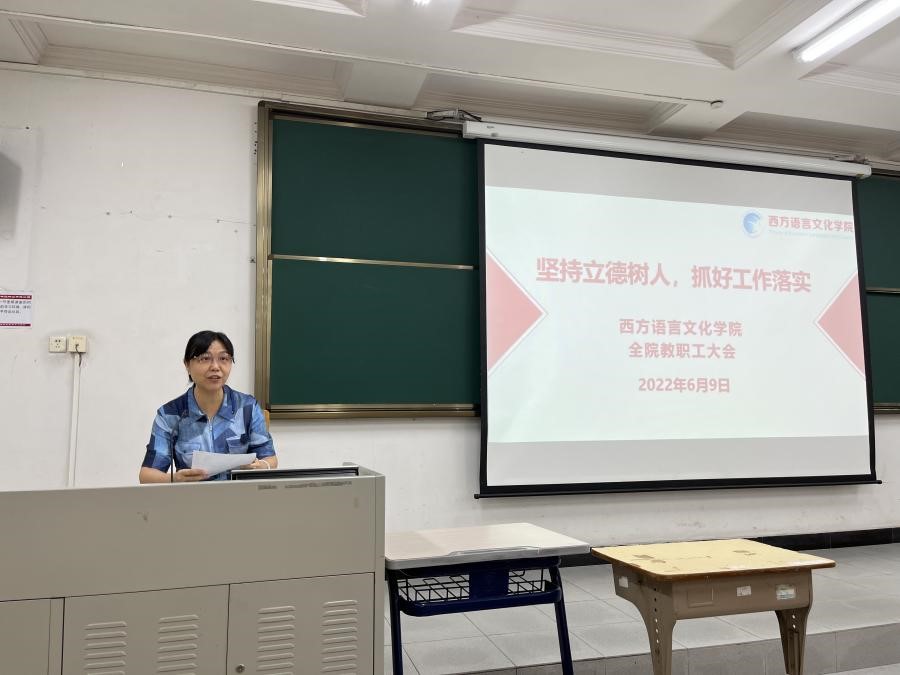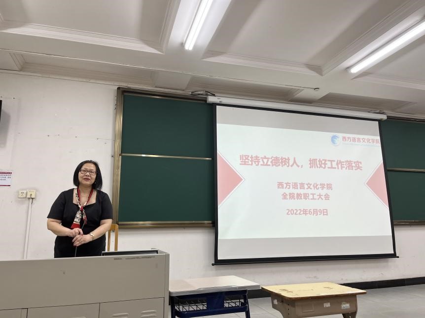 敖湘晖书记首先向全体教师介绍了本学期新加入法语系的黄超彬老师和新加入西班牙语系的伍镕桥老师,希望两位老师在今后的学习和工作中能继承和发扬百家乐在线试玩