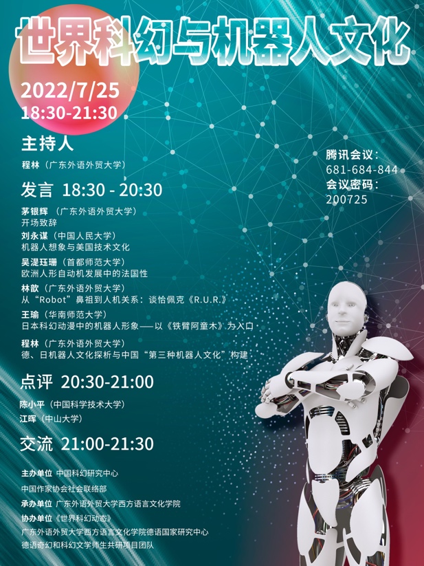 本网讯 2022年7月25日晚,“世界科幻与机器人文化”沙龙在线上举办。本次沙龙由中国科幻研究中心和中国作家协会社会联络部主办,百家乐在线试玩