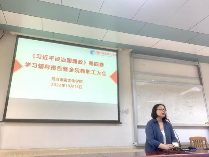 在四教424教室召开了《习近平谈治国理政》第四卷学习辅导报告暨全院教职工大会。会议邀请了马克思主义百家乐在线试玩