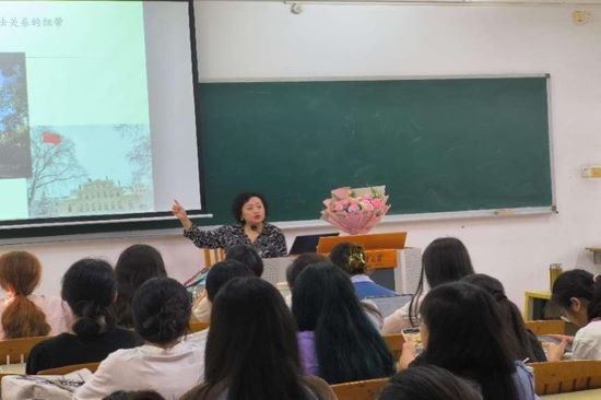 尹丽以《外交工作:进行沟通和交流的桥梁,保障国家利益的阵地》为主题,介绍了中法关系的历史,分享了自己曾作为中国驻法国大使馆一等秘书,在大使馆工作的经历,强调“外交官是不穿军装的士兵”,突出外交官的政治素养;总结了在文化外交工作中,聚集知华友华力量,传达中国声音,激扬中国精神的宝贵经验。一个多小时的讲座中,尹丽娓娓道来,通过自己在外交工作中的一个个小故事,既站位高远,又生动形象,让同学们在阵阵会意的笑声中深刻明白:作为中外文化交流的实践者,应努力提高政治站位,锤炼出过硬的业务技能,终身学习,才能在新时代的世界讲好中国故事。尤其当尹丽用法语演唱中国民歌《茉莉花》时,现场爆发出一阵热烈的掌声。