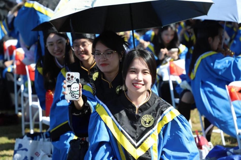 2020、2021届的校友陆续入场。校友们谈笑风生,笑容如阳光明媚,心情也如天气舒爽;学位服与操场舞台相衬出抹抹亮色,轻轻拨动学位帽上的帽穗,为他们炽热的校园生活画上了圆满的句号,但青春的美好与激荡仍在,他们亦将迎来属于自己的愈加美好的篇章。