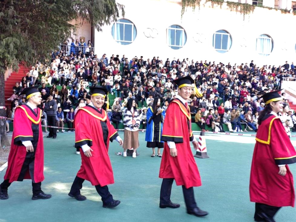 下午,学位授予仪式在修缮一新的综合体育场上如约而至。红旗飘飘,扬起我们的情怀;歌声朗朗,唱响青春的活力;草地上的椅子整齐排列,等候艳阳高照下各百家乐在线试玩