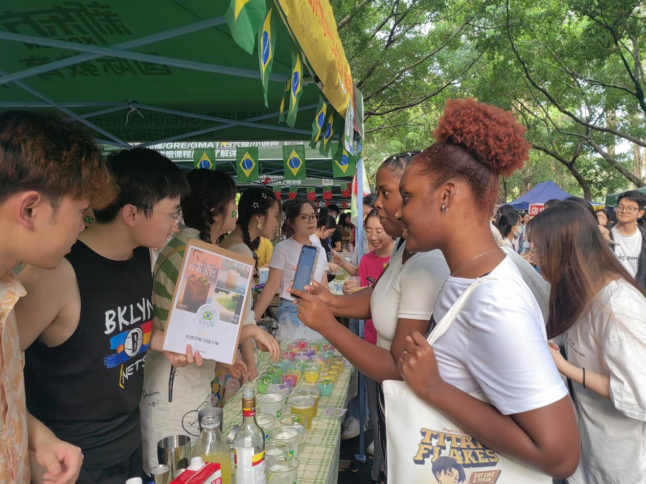 各语系学子精心准备的欧洲各国特色美食:香气四溢的俄罗斯列巴和红肠、西班牙的桑格利亚酒和火腿、葡萄牙的猪扒包和葡萄酒、意大利的意式千层酥和奶油意面等美食齐聚一堂,让师生们不出校门便能品尝到地道的欧洲风味。这不仅是一次味蕾的盛宴,更是一次文化的交流与碰撞。
