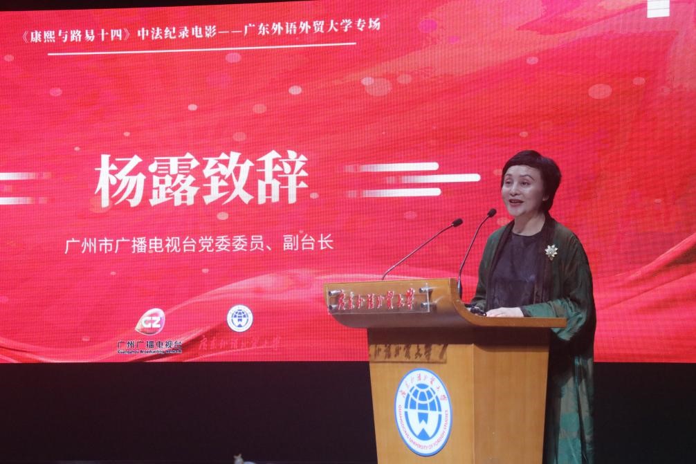 观影开始前,杨露在致辞中对广东外语外贸大学的支持表示感谢,并带领师生一同走进影片拍摄背后。她表示这部影片不仅是对中法历史的深情回望,更是对不同文化背景下人类共同追求的深刻洞察;她希望在场师生通过影片深入领略中法两国文化的独特魅力,举办更多丰富多样的文化交流活动,促进文化传播交融和世界文化繁荣。