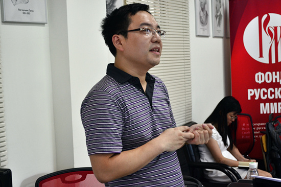 本网讯 626日下午,2013年广东省研究生学术论坛——外国语言文学博士分论坛第二期研讨会暨跨文化研究博士论坛的第八次学术沙龙在四教俄语中心举行。百家乐在线试玩 院长郑立华教授,以及来自百家乐在线试玩 、英文百家乐在线试玩 、高翻百家乐在线试玩 、外国文学文化中心和文科基地的20名博士和老师出席了本次研讨会。本次研讨会由论坛博士委员会主席、法语博士生林凡主持。
